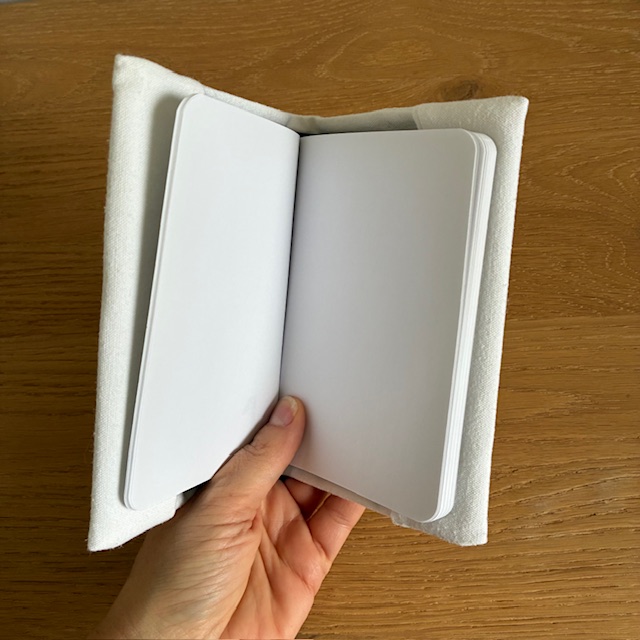The cover is entirely removable, washable, and can be reused on another A6 notebook once this one is full. This way, you can prolong the life of this beautiful textile object while continuing to write, draw or dream.