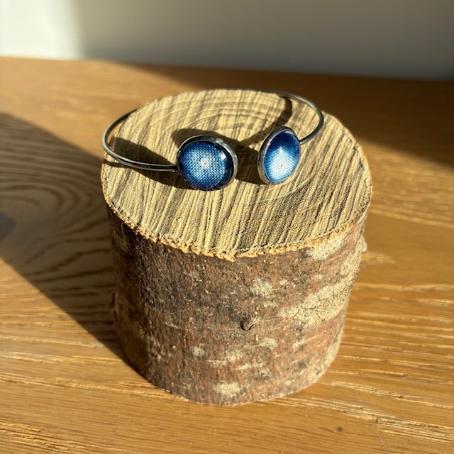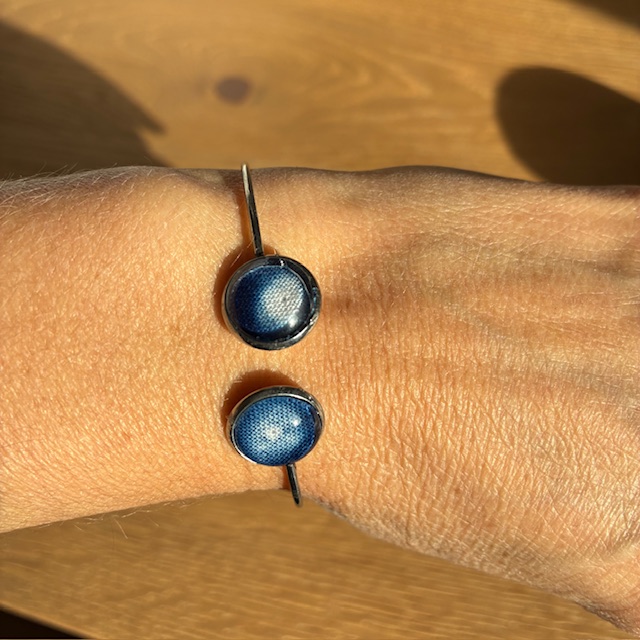 Each piece is unique: the motifs vary according to the inspiration of the moment and the dyeing process. To wear this bracelet is to take with you a little piece of Shibori, a fragment of blue sky, a link between Japanese tradition and contemporary creation.