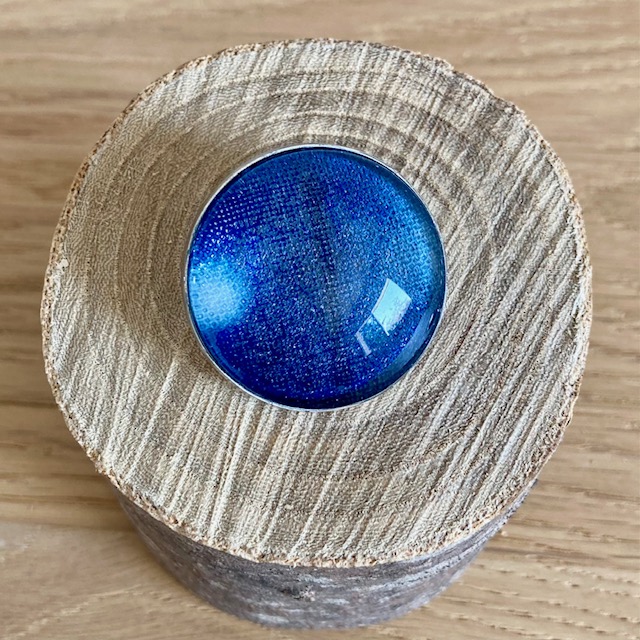 Each brooch is a fragment of textile poetry. Made from silver-plated stainless steel, it highlights a small piece of fabric dyed by hand using the traditional Japanese Shibori technique, with natural indigo. The fabric is delicately protected under a glass cabochon, which amplifies the shades of blue and the subtle patterns formed by folding, sewing or binding the textile.