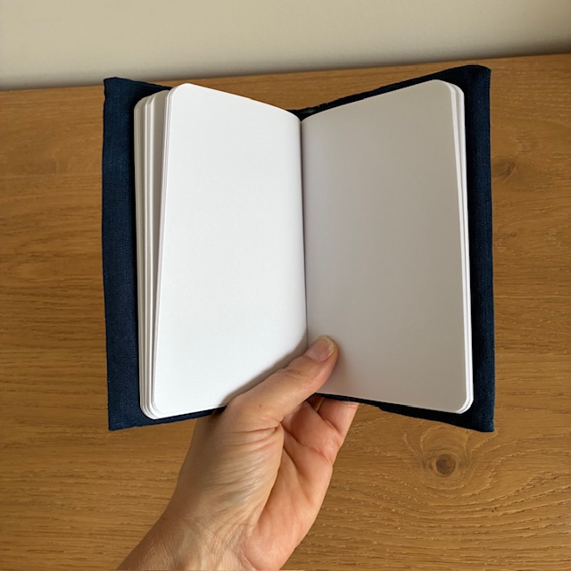 La housse est entièrement amovible, lavable, et peut être réutilisée sur un autre carnet A6 une fois celui-ci rempli. Vous pouvez ainsi prolonger la vie de ce bel objet textile tout en continuant à écrire, dessiner ou rêver.